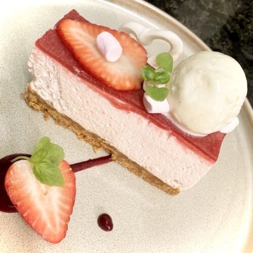 Strawberry cheesecake anyone? This recipe is just perfect for any occasion. It just fits. I’ve always liked a thick biscuit base so for me a chunky base is non-negotiable.